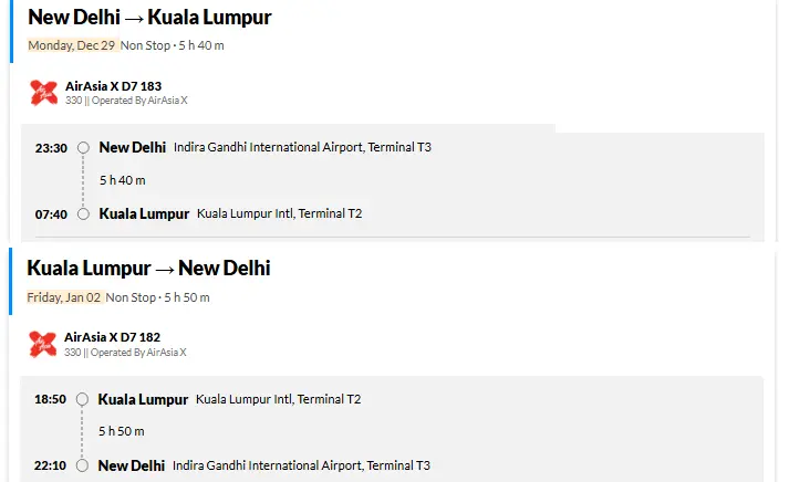 Economy Class airfare (Delhi- Kualalumpur- Delhi with 20 Kg Check in Baggage)
