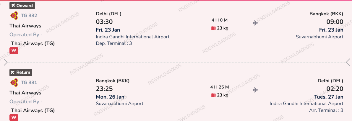 On Arrival Visa fee of 2000 Thai baht (to be Paid directly by the Guest at Thailand airport) OR Visa fee from India Rs.