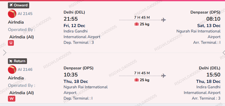 Airfare from Delhi - Bali - Delhi