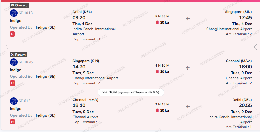 - Return Economy Class Airfare (Delhi-Singapore-Delhi)
