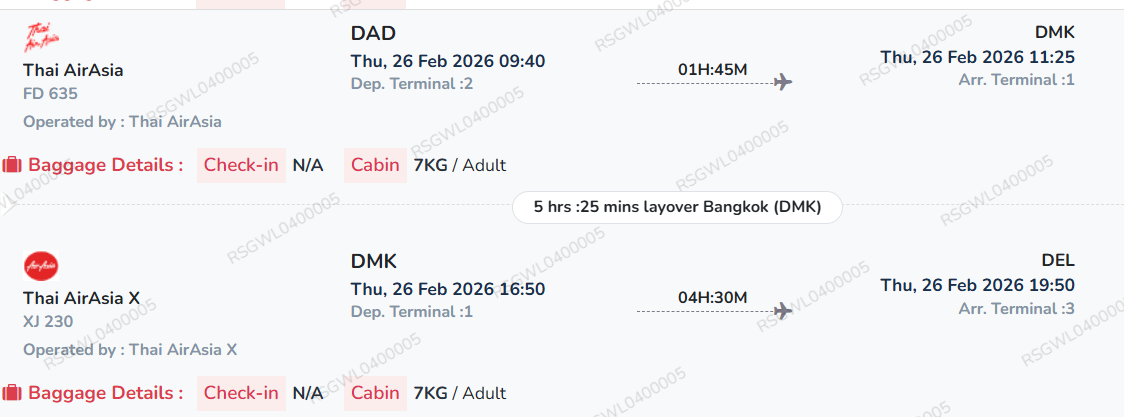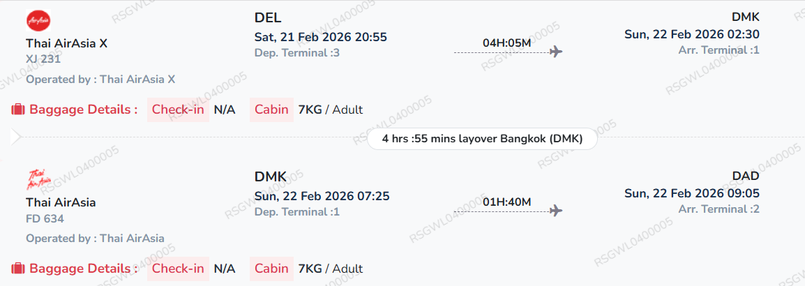 Air Fare Delhi-Da Nang-Delhi (Both sector 20 Kg Baggage include)
