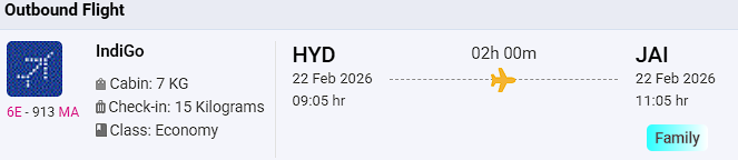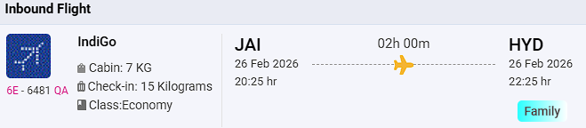 TRAVEL DATES | 22th Feb, 2026 to 26th Feb, 2026 |