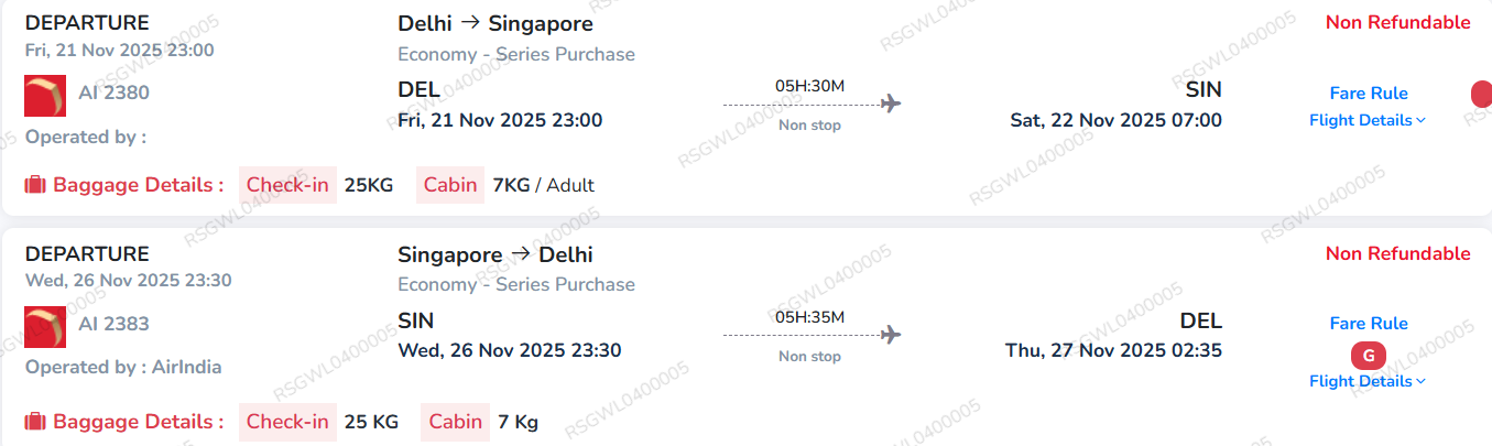 Travel start date - 22 November 2025