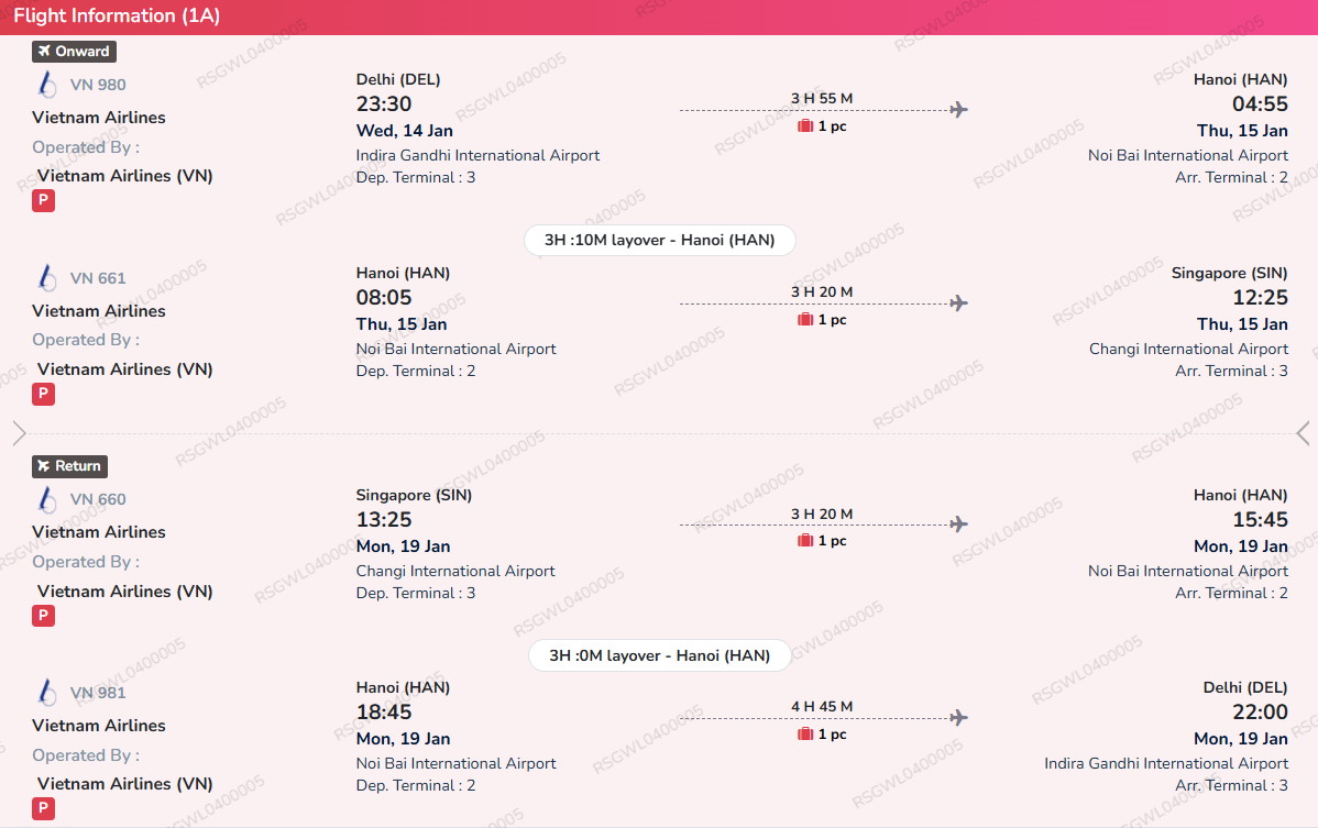 Round Trip fare - 26,000/- Per Person (Non Refundable)
