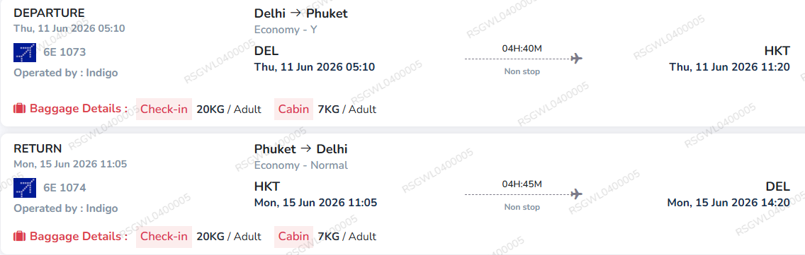 On Arrival Visa fee of 2000 Thai baht (to be Paid directly by the Guest at Thailand airport) OR Visa fee from India Rs.