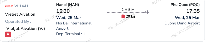 Hanoi to Phu Quoc 25 March