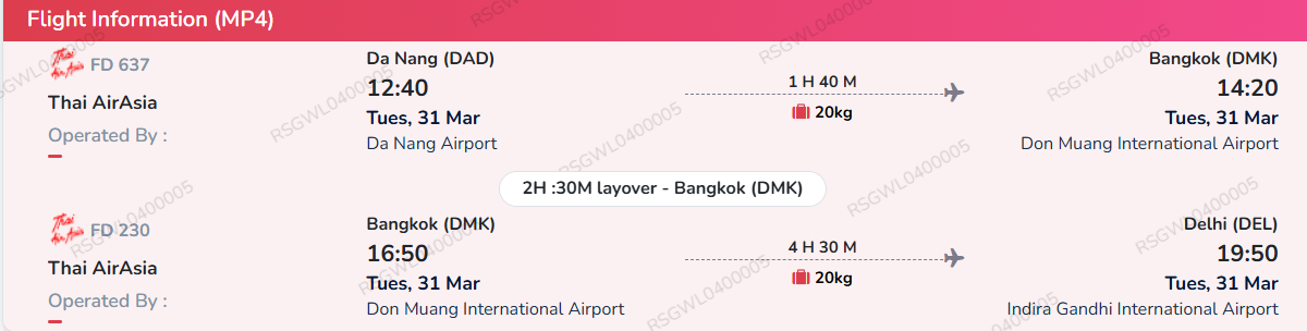 Da Nang to Delhi 31 March